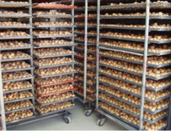 - 此時經(jīng)過前期的階段升溫,可將烘房溫度設(shè)置為70℃。持續(xù)運行2小時左右。此時打開門,觀察物料的外觀、干燥程度。待物料有8-9成干時,即可關(guān)閉加熱主機,烘房溫度回溫至室溫時即可將烘房內(nèi)的推車取出,將干制后的成品取出。